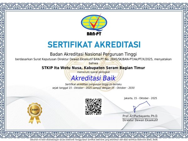 STKIP Ita Wotu Nusa Bula berhasil memperoleh status Terakreditasi Baik berdasarkan hasil asesmen akreditasi yang dilaksanakan pada 24–25 September 2025. Proses akreditasi ini menjadi bagian penting dalam upaya peningkatan mutu..